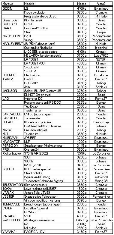 23 instruments pesés et photographiés pour la plupart, qui attendent d'être intégrés au tableau.