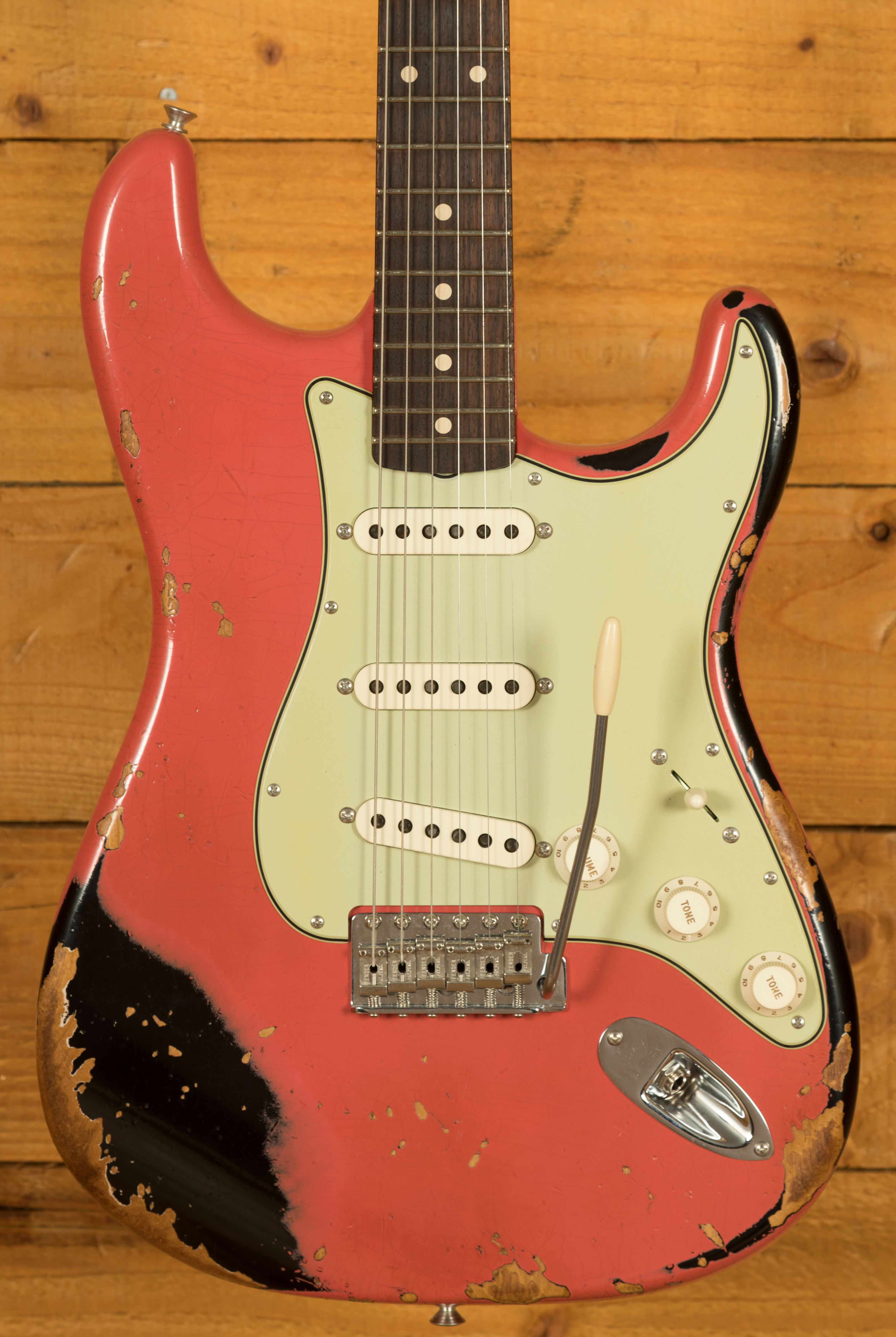 Suite à cette recherche (j’ai d’autres photo encore, notamment en light relic), je pense choisir le fiesta red, avec plaque tortoise en light ou en heavy relic.