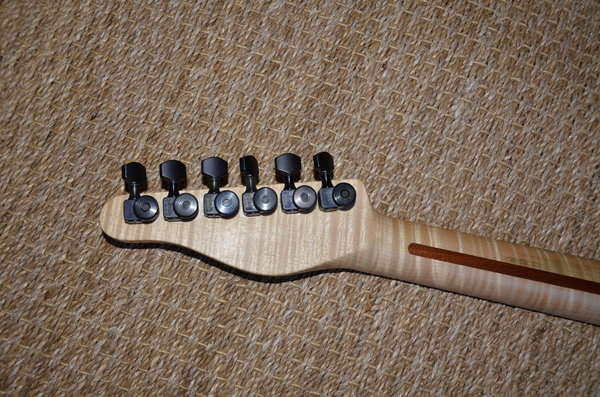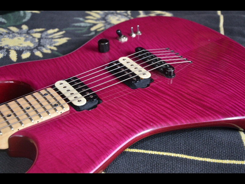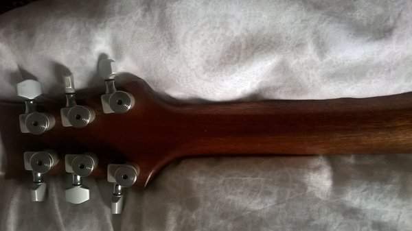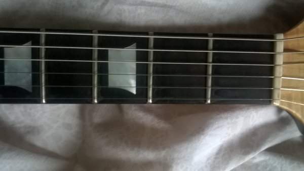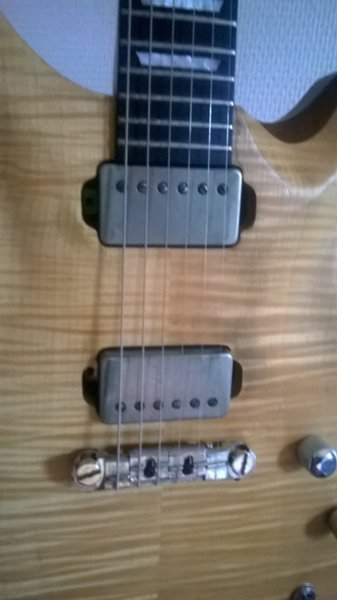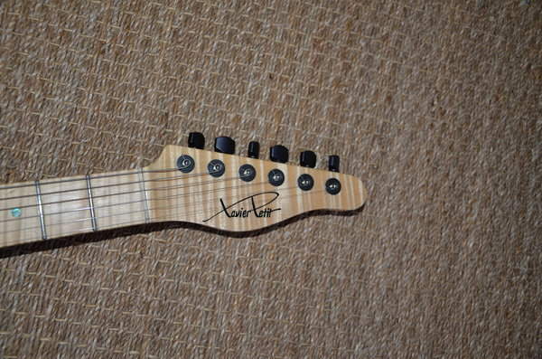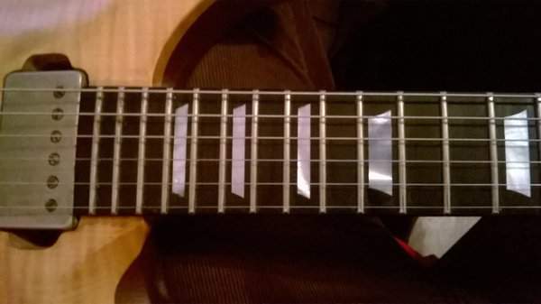 Là, la finition c'est plutôt 2 couches de vernis PU et Xavier n'a pas passé des heures à poncer l'ébène au 0000 : ça n'a pas le côté miroir et satiné auquel on aura droit sur des grattes de luthiers qui d'ordinaire couteront le double. ça n'ôte rien aux qualités des instruments, ça a même un bon côté: ça donne envie de faire son gros rocker d'autant plus que les deux là sont vraiment taillées pour taper du LedZep, du Thin Lizzy, du Aerosmith des 70's, etc... Pour ceux qui ont arrêté de picoler, fumer, manger de la viande, tirer tout ce qui bouge, acheté un AxeFx, etc, tout ce que je peux leur dire, c'est qu'avec des pelles comme ça, votre trip manche à balais dans le cul est mal barré: c'est des engins à redevenir un vrai rocker, ça sent le plan à arrêter même d'abrutir les mioches à coup de Disney et de leur faire découvrir Fritz le Chat et Tarzoon... On ressort le Perfecto, les bracelets à clous, la cartouchière et le t-shirt de Motörhad