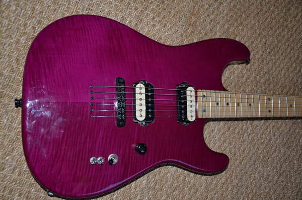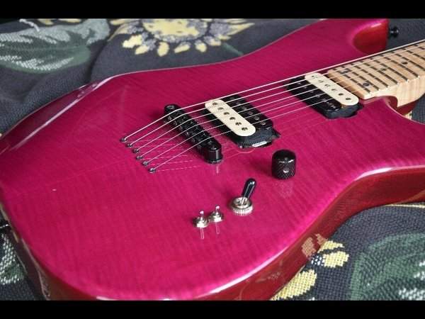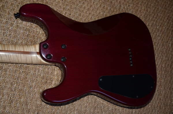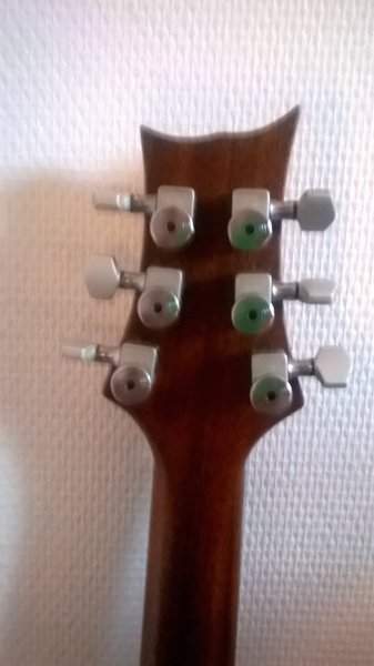 Pour ce qui est de la "PRS" (qui est une 24 cases), on est vraiment dans les rails des LP dont nombre rêvent quoi qu'il faudrait faire un test A/B mais j'ai l'impression d'un chouilla de précision en + et de boueux en moins. Pour celle à maple-neck, ça a plus de claquant et d'agressivité, + d'érable oblige, ce qui n'est pas forcément un mal et bien que ce soit du vissé (et talon profilé SVP), le sustain est énorme, la corde de mi ne doit pas être loin de la minute, ce qui est gage d'un assemblage impeccable.
