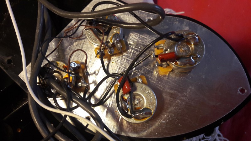 Les potards sont des CTS 250K et j'ai l'impression que l'électronique a été changé, en raison des soudures un peu mal faites.
