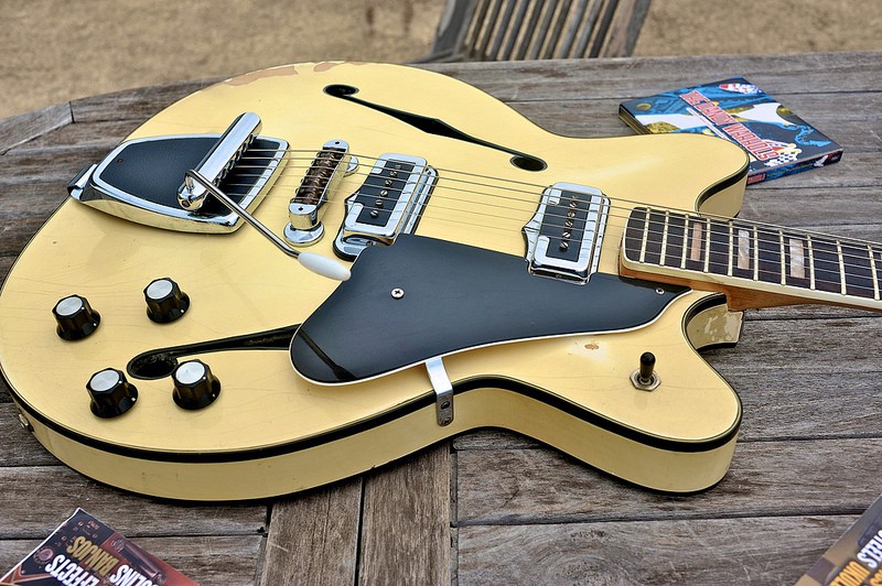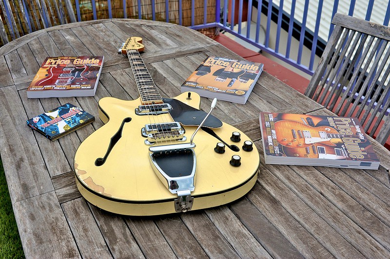 en revanche, ce n'est pas un hasard qu'elle ait fait un bide à l'époque : manche vissé et micros très quelconques, ça ne le fait pas vis à vis d'une 330 ou d'une Guild Starfire (première série), voire même d'une Hagstrom Viking de la même époque.