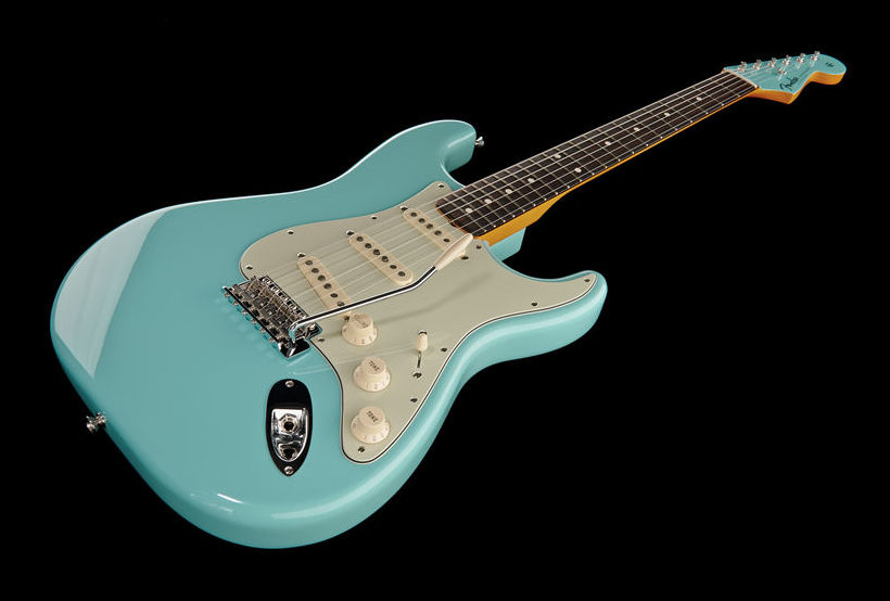 Les stratocasters en finition "Matching Headstock" (tete peinte) sont assez rares. Si quelqu'un du forum pouvait nous eclairer sur l'historique de cette finition, ce serait formidable.
