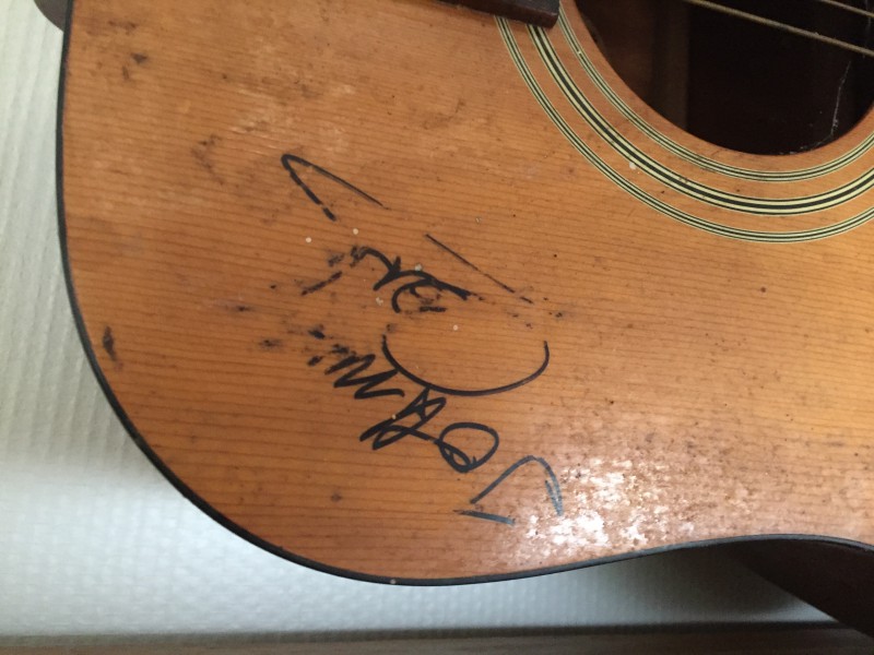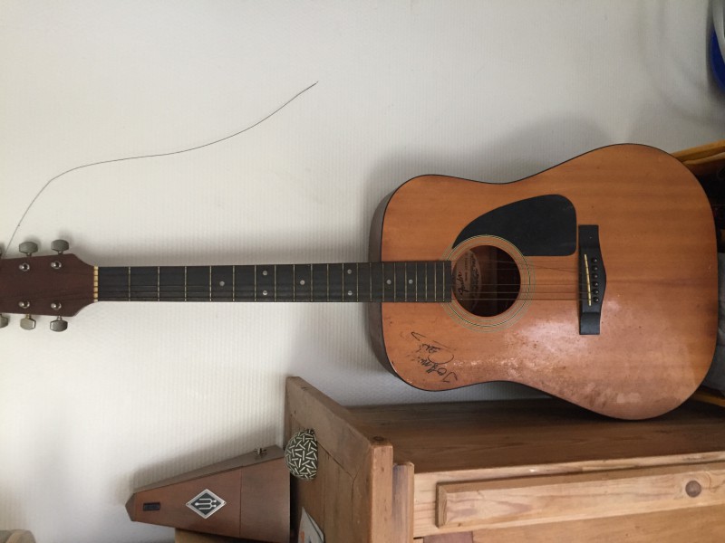 La guitare n'a pas l'air d'être en mauvais état en tout cas, vu de loin !