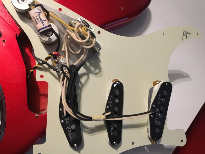 Le câblage et le condensateur non plus ne sont pas d'origine : l'ensemble du pickguard a donc très bien pu être changé.