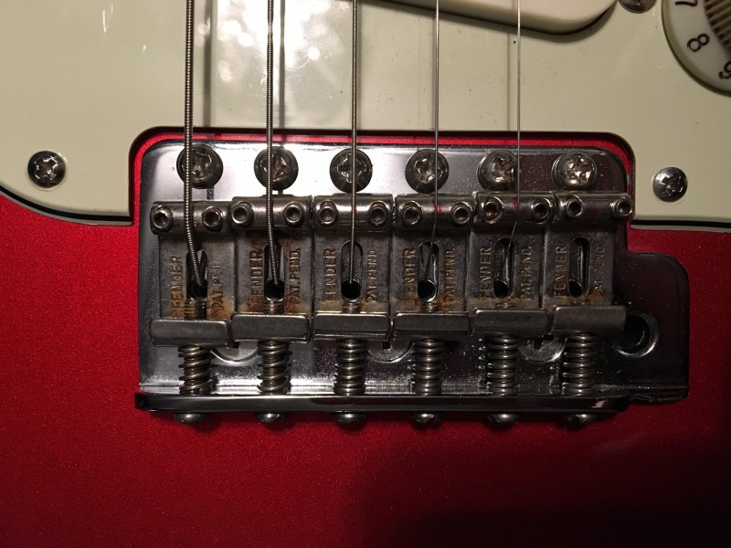Alors, déjà, premièrement, au moment de l'achat, je ne savais pas ce que je voulais si ce n'est "une strat' Fender". Après avoir essayé la gratte (et quelques autres), j'en suis super content et je dis au vendeur que je la prends. C'est seulement après ça qu'il m'a donné quelques infos qui m'ont fait réfléchir (c'est dommage, s'il ne m'avait rien dit, j'aurais été très content et je n'aurais même pas fait la démarche actuelle...). D'après, le vendeur, cette gratte coûtait à l'époque de sa fabrication entre 1200 et 1400€ et il m'a également dit que c'était un vernis nitro. Là, je me dis, ah bah c'est cool, je fais vraiment une bonne affaire.