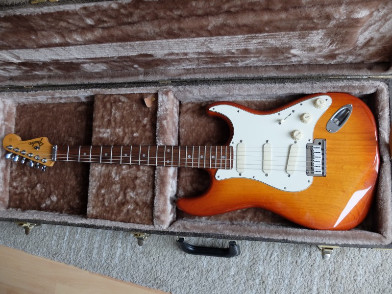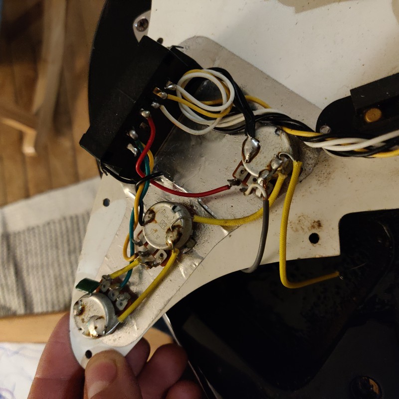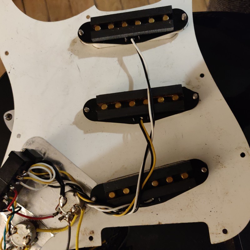 - changer le pickguard en plastique qui crée des parasites dûs à l'électricité statique quand on l'effleure à l'endroit où il est usé (surface brillante et non plus mate),
