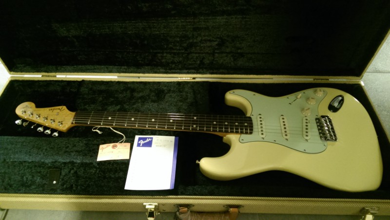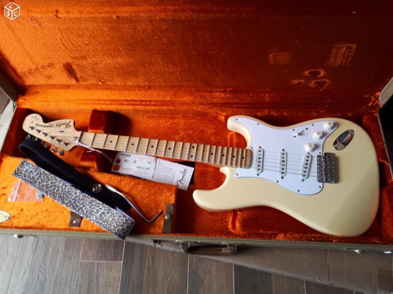 voilà ma dernière trouvaille, enfin depuis quelques mois, une Malmsteen custom order de 1988 avec touche rosewood, bref, le modèle qui est aujourd'hui vraiment difficile a trouver et donc la cote ne cesse de grimper...