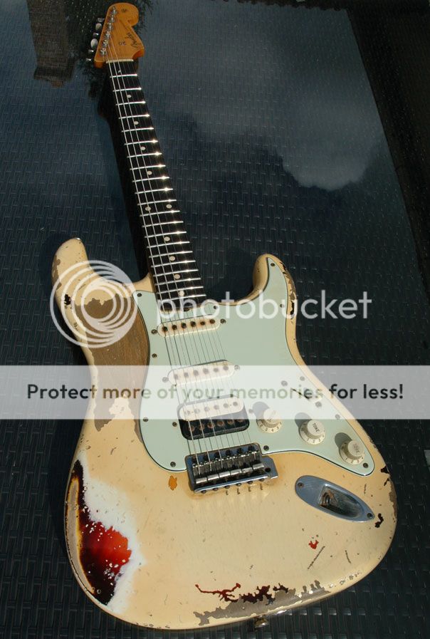 Donc après quelques Gibson ou Fender custom shop ou non, après diverses Gibson ou Strat' vintage, après quelques MB voici les Strat' de ma "collection".