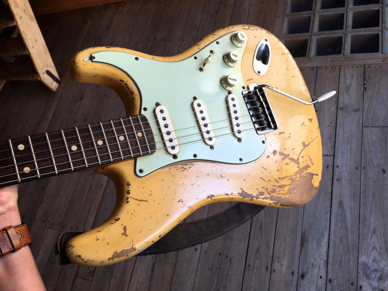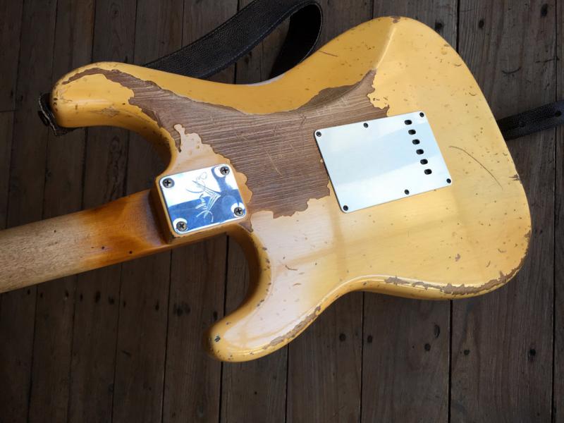 Ca permet de recréer le même pattern sur plusieurs guitares lors de l'application de la finition. Une énorme partie du travail de relic'ing de Cruz n'est pas faite à la main, et il a quelques masques qu'on retrouve un peu partout. A force de les voir tu les connais par coeur.