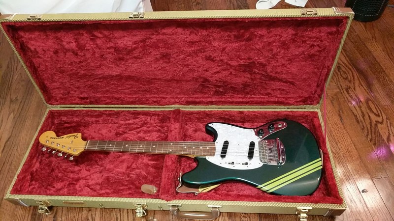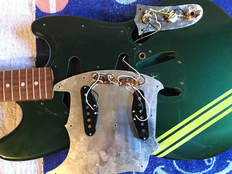 J'étais tombé sur annonce Reverb d'un gars au Texas qui en vendait une. La sienne était de couleure verte par l'ajout d'un vernis cellulo jaune la rendant soit disant unique