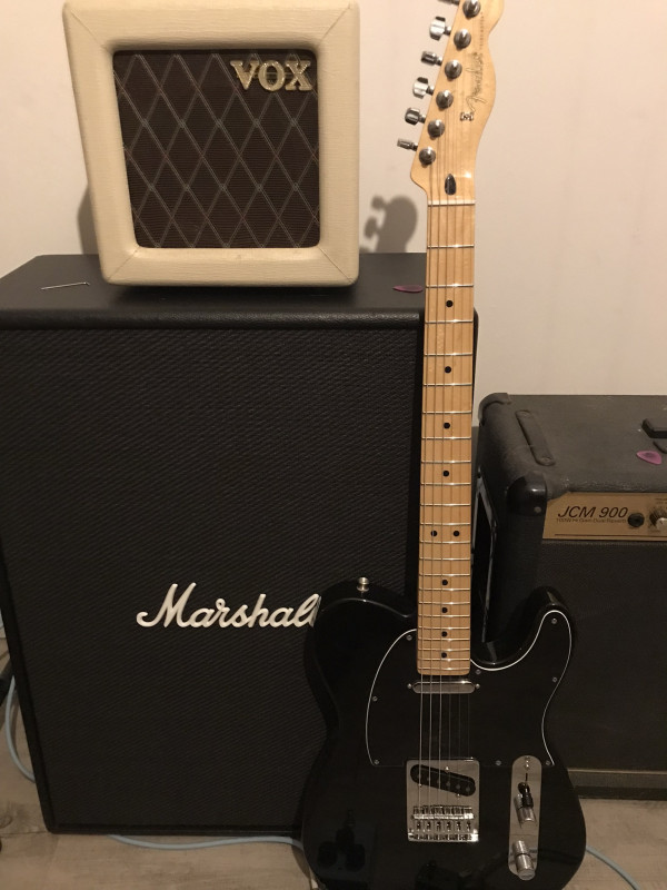 jmg12 #1 Publié par jmg12 le 15 Déc 2021, 09:19 Bonjour, j'entre dans le club avec une Player black mapple , j'ai la même en Squier Bullet 21 frettes photo avec mon Vox AC4 modified , qui tourne sur 2x12 8 ohms Telecaster Player