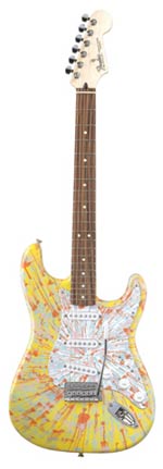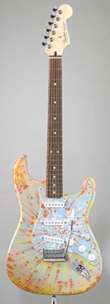 Finally, art you can touch! Designed after the ever-popular and modern “Spin Art,” each Splatter Stratocaster® guitar has its own “one-of-a-kind” finish. We start with a Standard Series Stratocaster guitar and then drip various colors in different sequences on the front and back of the spinning body to create a truly individual and unique finish. Between the six different base body finishes and 15 different applied paint colors, there is an endless array of color possibilities. Why hang original art on the wall, when you can strap it on and play it!