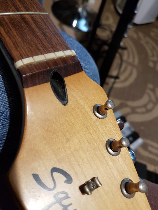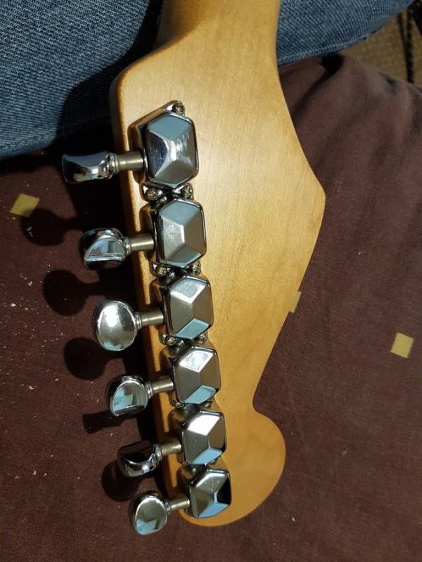 Lors du processus de fabrication des manches US, le perçage des trous pour les mécaniques est la première étape, avant même que le manche ne soit façonné ! Le diamètre des mécaniques "Squier" étant plus petits que celui des mécaniques montées sur les "Fender" US, difficile d' imaginer comment le montage de telles mécaniques aurait été possible sur un véritable manche made in US.
