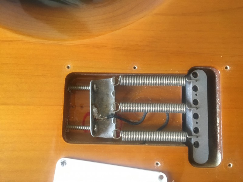 -plaque micros: pas de photo du dessous, impossible de savoir si plaque US d’origine. (Pas de micros Fender 57/62 en tout cas car absence de chanfreins sur les plots)