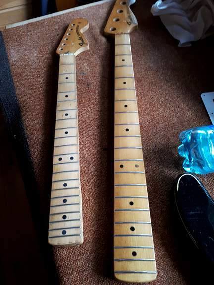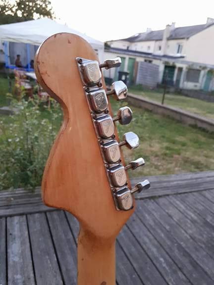 J'ai eu plusieurs stratocaster au fil du temps, ma première était une copie de la marque Eagle réplique d'une d'une CBS, j'ai par la suite une une Fender japonaise avec un vibrato style Floyd Rose dont j'ai pas mal abusé. Par la suite j'ai eu ma première Strato USA, une CBS de 1976 à priori. Elle sonne plutôt pas mal ( je la possède toujours ) mais question finitions, on sent la construction à l'arrache, il suffit de regarder les cavités du corps, mécaniques F merdiques, pontets trop tendres entaillés par les cordes et quant au vibrato, le moindre petit coup sur la tige et elle se désaccorde. Moi qui avait pris l'habitude de m'en servir, quelle ne fut pas ma déception. j'ai tenté différents moyens pour y remédier. Sillet, guides cordes et pontets en graphite, système tremsetter, remplacement des mécaniques d'origine par des à bain d'huile et également par des à blocage. Résultat zéro, j'ai fini par remonter la gratte avec ses pièces d'origines et j'ai renoncé au vibrato à tel point que j'en avais supprimé la tige. Par la suite, j'ai fait 'acquisition d'un modèle américain vintage 62 et là, le bonheur. Manche en C extra et tenue d'accord parfaite malgré des grand coup de vibrato. Je kiffe tellement ce modèle que j'en possède 2 autres. J'ai toujours ma CBS (comme ce fut ma première gratte USA et que je suis un sentimental) mais pour ainsi dire je ne m'en sers jamais. Apparemment, d'après ce que l'on m'a dit la mauvaise tenue d'accord est du au fait que le manche est fixé par trois vis et non quatre au corps. Suis -je tombé sur un mauvais modèle car que ce soit Malmsteen , Uli Jon Roth (à l'époque Scorpions) ou Blackmore, qui ne sont pas avares en vibrato et adeptes de ce modèle, ils ne semblent pas rencontrer le même problème que moi. (C'est peut être parce que ce sont des virtuoses et que je ne suis qu'un modeste guitareux).