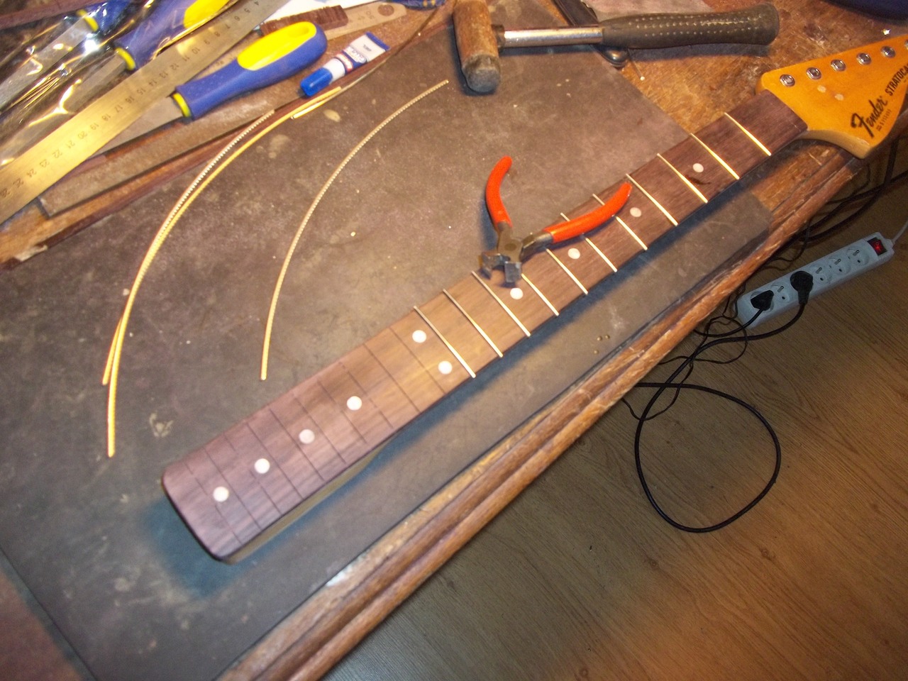 Mon problème a été situé sur la touche trop usée = frettage impossible sur cette touche devenue trop mince,je n'ais pas de regret d'avoir changé celle ci ,mais ...Le.palissandre de Rio ne ce trouve plus ,de plus son veinage était joli,bref ....