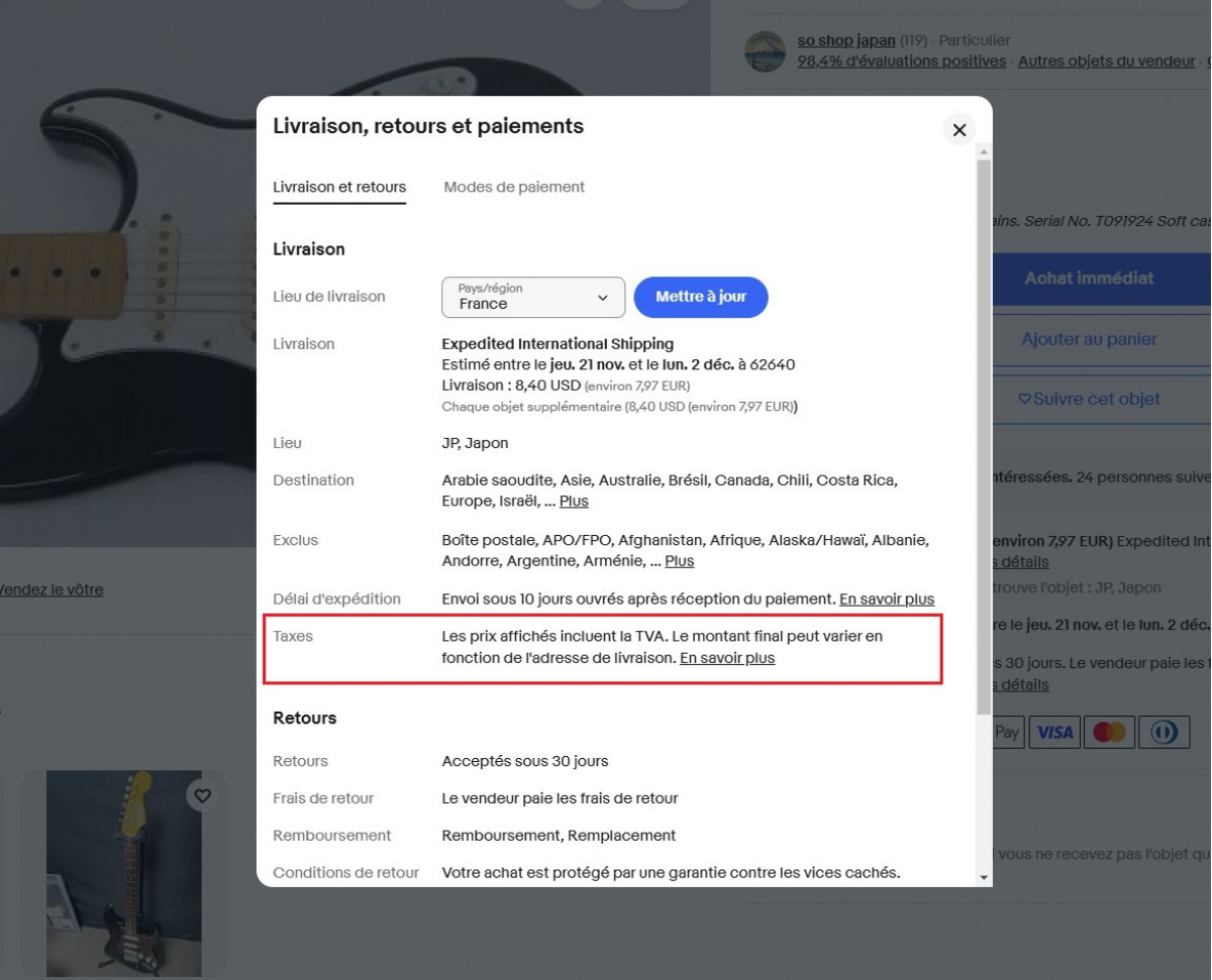 C'est ainsi que j'ai trouvé ma Fender Stratocaster Omochi (celle qu'on voit dans la vidéo à 08:43):