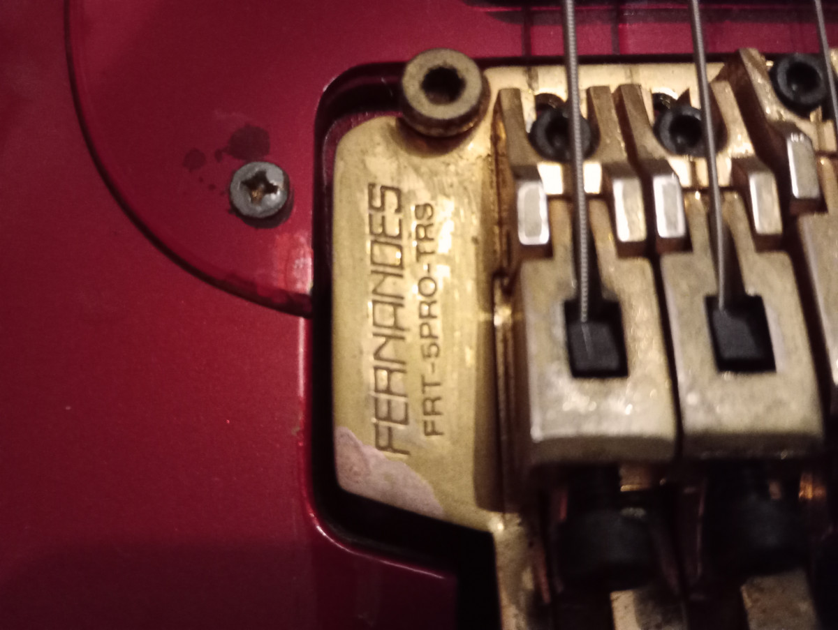 Cherchant à remettre en état ma guitare d'occasion Fernandes LA-85KK, la boutique qui s'est occupé de mon changement de cordes et du réglage m'a informée que le Floyd Rose (ref FRT-5PRO-TRS Gold ) était défectueux. Je cherche donc à remplacer celui-ci si possible par la même référence pour tenter de rester le plus possible dans l'esprit d'origine de la guitare.