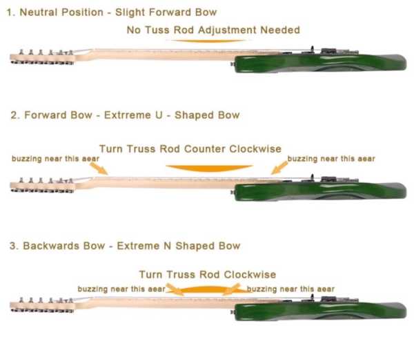 Bref oui quand on détend le trussrod les cordes sont plus hautes.