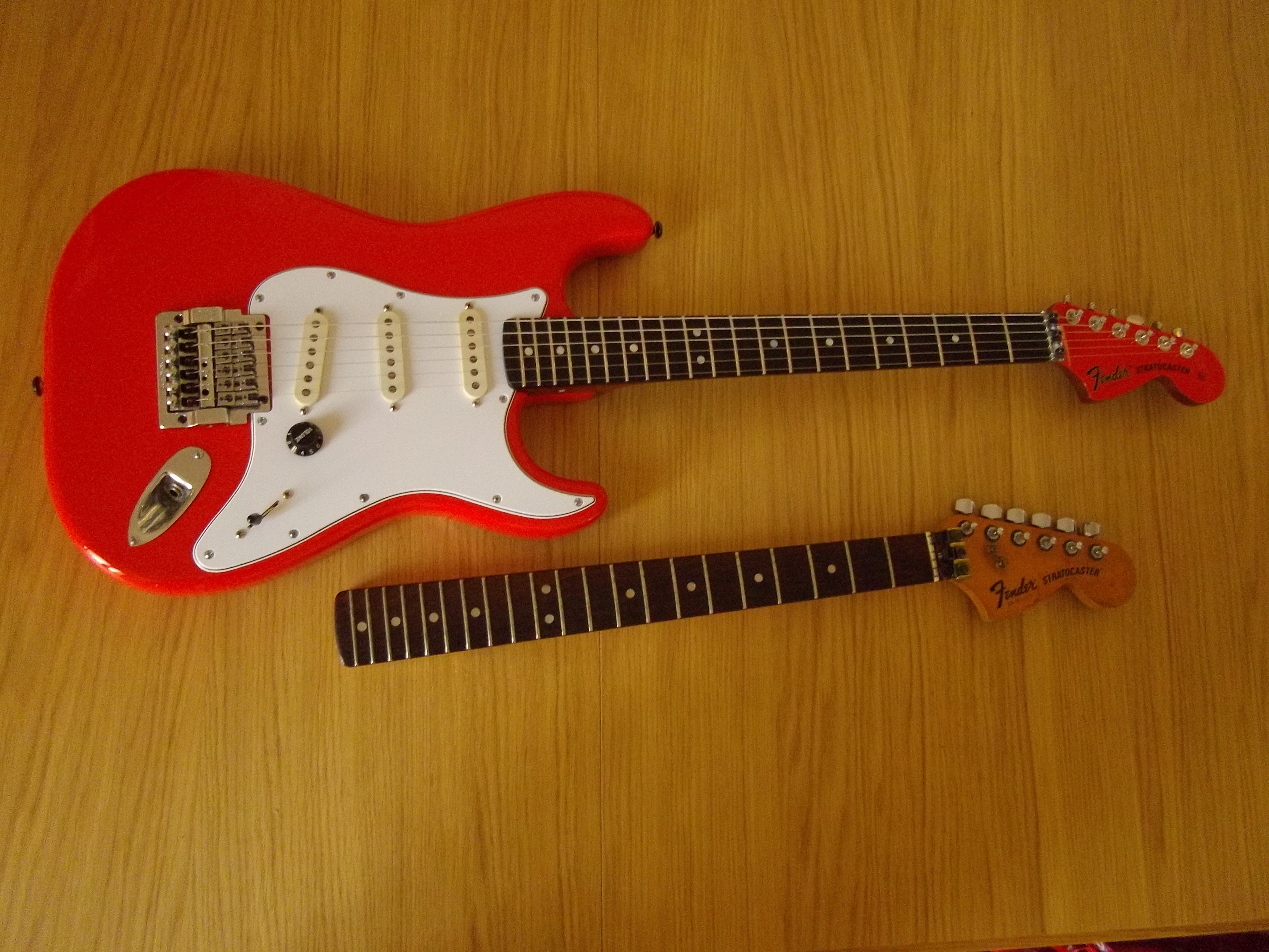 J'ai commencé avec ma Strat CBS de 1976...en effet pour trouver des manches de 1.75 inch dans les guitares de séries industrielles fallait se lever de bonne heure... mais Warmoth sous licence Fender construit des manches sur mesures...mon sang n'a fait qu'un tour...