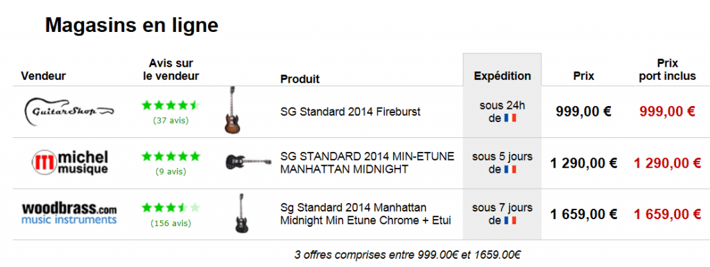 de plus les prix relevés sont parfois des prix de guitares qui n'existent pas...la 61r à 1900 euros est indisponible dans le seul magasin qui sert de référence au prix....