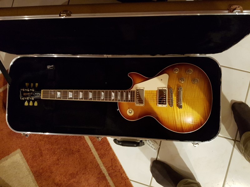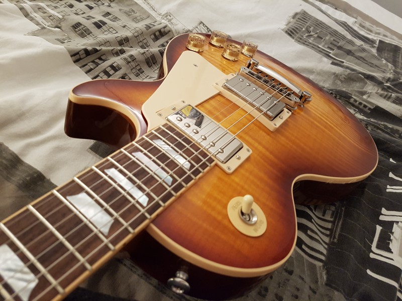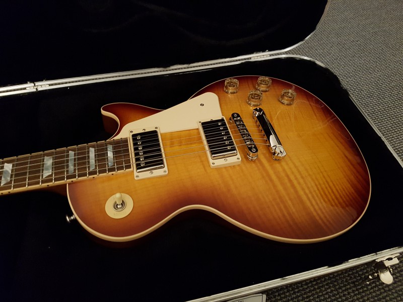 Bon, et bien voilà j'ai totalement craqué. L'idée d'avoir une LP était dans un coin de ma tête depuis un bon moment, les prix cassés sur la série 2015 m'ont fait sauter le pas, j'ai donc commandé la Les Paul Traditional 2015 HB que j'ai reçu hier