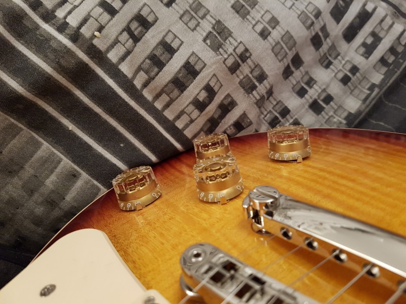 Les points faibles sont les mécaniques G Force, je vais les virer et installer un set de Kluson Revolution elles sont légères, modernes avec un style vintage, le ratio est de 1:19