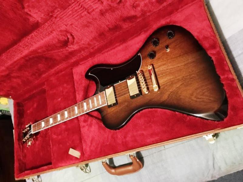J'ai eut une Les Paul junior faded brown 2009 que je trouvais magnifique, une les paul studio wine red de 96 que j'adorais avec son accastillage passé du doré au gris, j'ai une black beauty des 70 toute décatis que j'aime beaucoup, comme les black beauty pas décatis. Par contre je n'aime pas les guitares marqueterie.