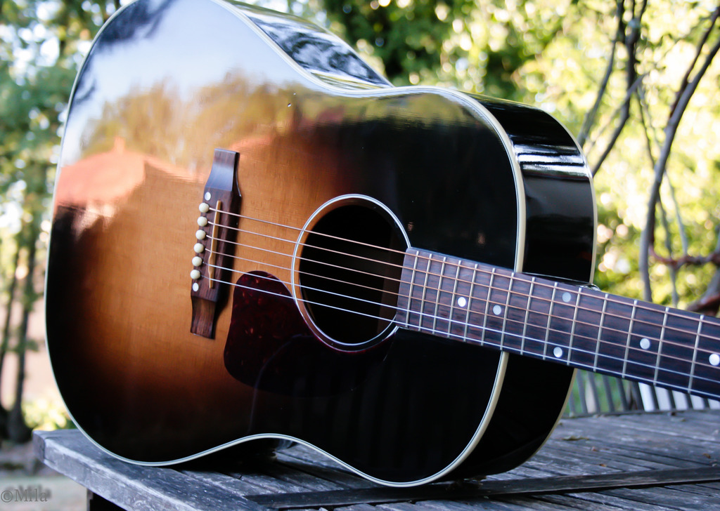 J'ai fait l'acquisition  d'une J45, en occasion. Une electro acoustique donc, équipée du Preamp L.R. Baggs Element, système actif.
