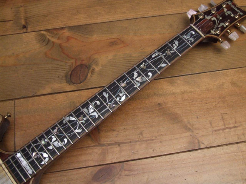 La Ibanez 2676, elle a de vraies MOP incrustations au niveau de la table, qui, par ailleurs, semble être faite en une seule pièce d’érable ...
