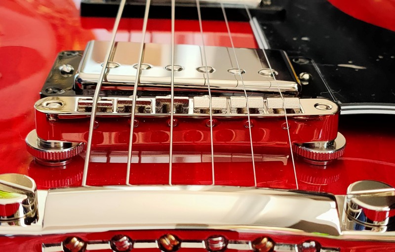 Le point le plus faible de ce tune-o-matic est la tige que l'on voit et qui maintient les vis des pontets.
