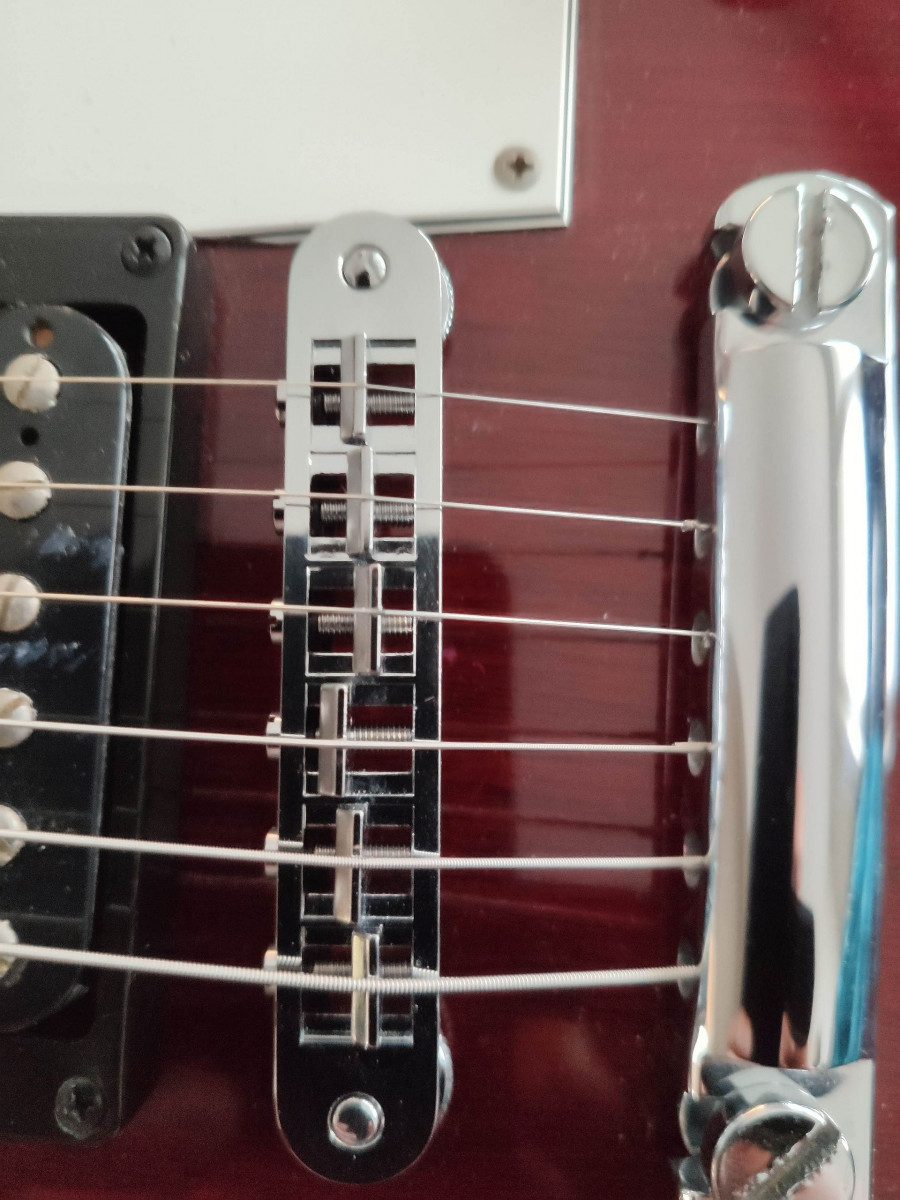 Du coup je l'ai laissée dans l'état d'origine, sans capots donc. Nouvelles cordes et micros ajustés (pour utiliser les capots, le proprio précédent avait monté ++ les plots, je les ai redescendus et j'ai monté un peu les micros): en-chan-té !!! Elle sonne du feu de dieu et comme elle était déjà très agréable à jouer ... Elle a 27 ans mais non elle ne va pas rejoindre le club des 27, au contraire c'est une nouvelle vie qui s'offre à elle