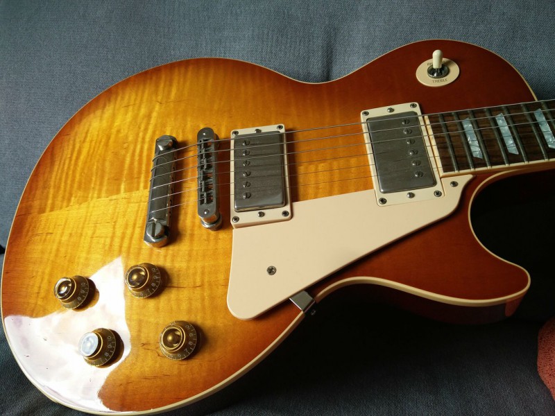Je viens a la pêche aux informations, je suis sur le point d'acheter une gibson les paul custom, mais je voudrais savoir si certaines personnes on déjà vu cette table en cherry sunburst. La guitare n'est pas d'origine au vu des emg, mais elle a bien l'air authentique.