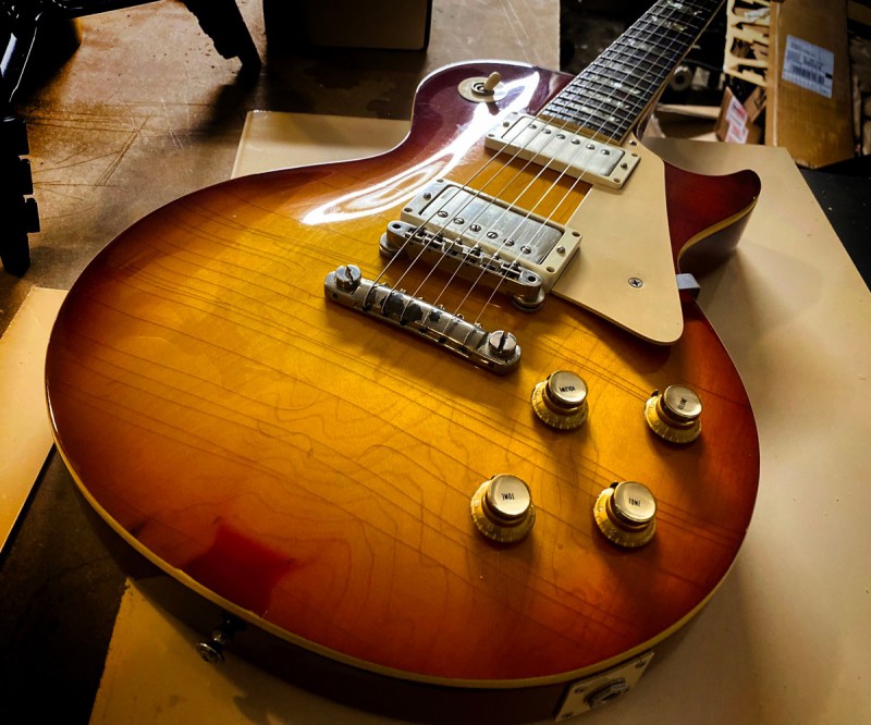 Perso, je trouve ce style de cordier pas très esthétique sur une LP mais c'est subjectif ...toutefois, j'ai quand même un doute qu'un vernis atteint de cette façon et avec un résultat aussi visible puisse complètement disparaitre mais je me trompe peut-être...