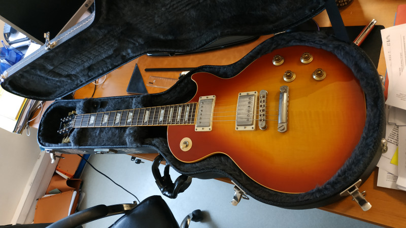 A peine rentré d'une course folle, voici ma première Les paul Gibson ( j'ai eu de tout, mais pas encore de Gibson).