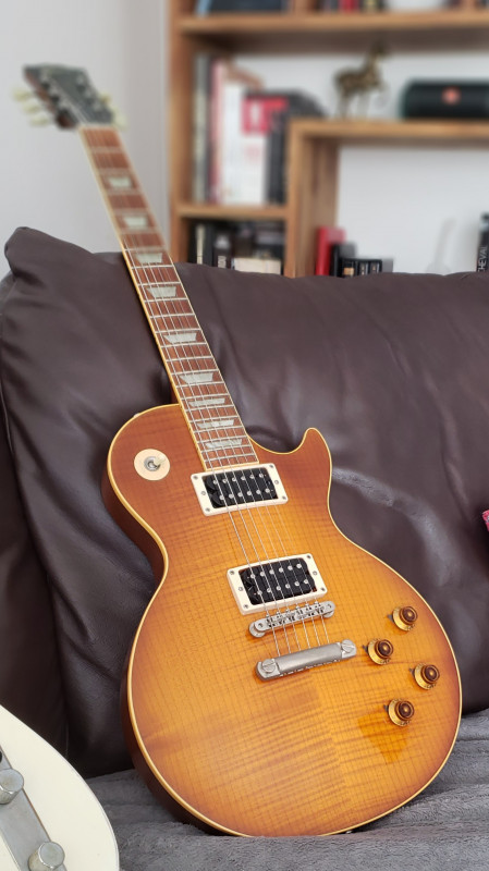 Et d'un autre coté, une LP sans son pickguard, je ne sais pas, il y a un truc qui me dérange, manquant. J'sais pas, ça fait trop vide. C'est un peu pareil pour les autres Gibson.