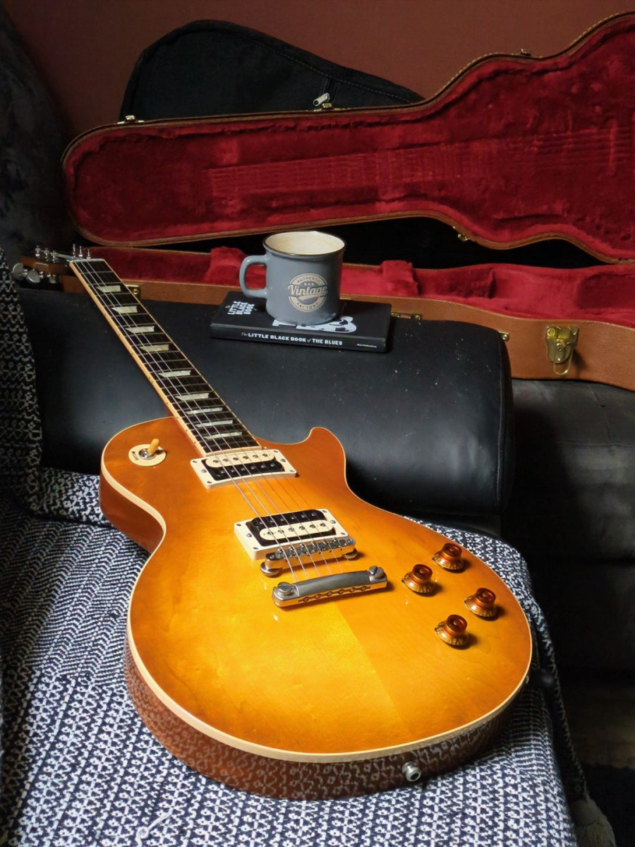 Je ne sais plus si je l'avais déjà présentée, alors que je l'ai depuis assez longtemps (2018 ) - une Custom Historic '60 Les Paul Special single cut reissue (ouf) en spanish gold VOS (de 2018 donc).