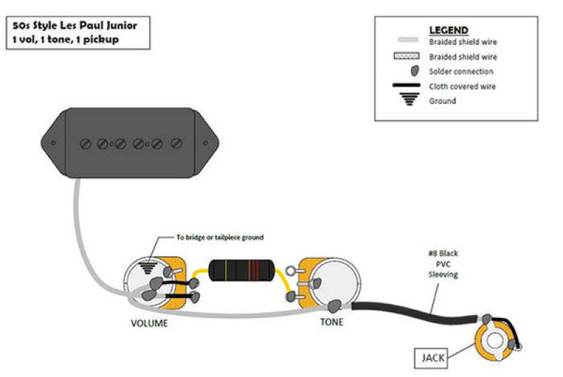 Du coup je pense que ce diagramme pour Les Paul Junior sera parfaitement adapté au nouveau micro et bien plus "propre".