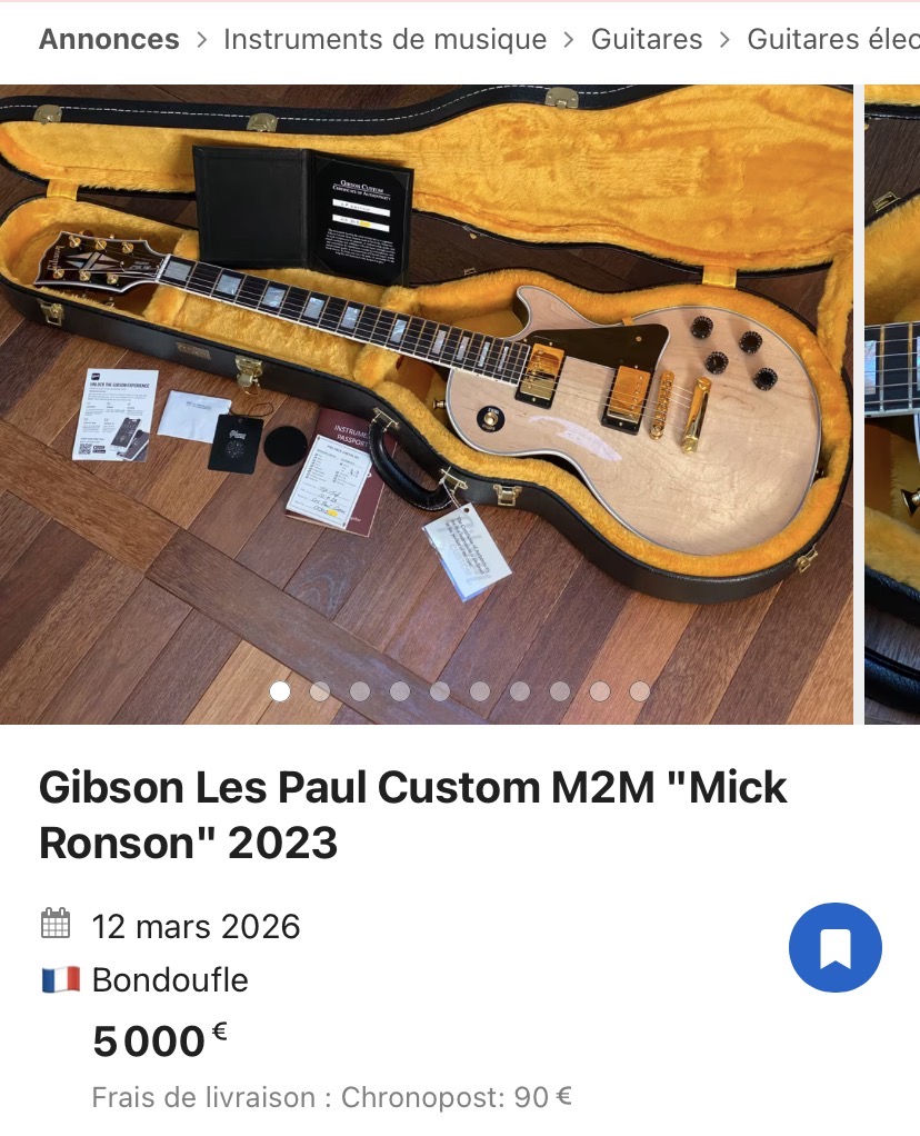 Par contre, pour une réplique hors de prix d'une guitare qui ne me fait pas plus fantasmer que celà ... pas vraiment. Je m'explique: au contraire de certains guitaristes, le son de Mick Ronson n'est PAS un "beau son tout droit sorti de l'ampli" - c'est ce son nasillard (wah à mi-course) pas spécialement "beau" mais parfait pour les orchestrations (à noter: un certain Brian May utilise le même truc, avec d'autres moyens, pour ses orchestrations). Et là, honnêtement, tu peux le reproduire avec n'importe quelle guitare munie de humbuckers et une wah ... à condition d'abord son sens mélodique hors du commun.