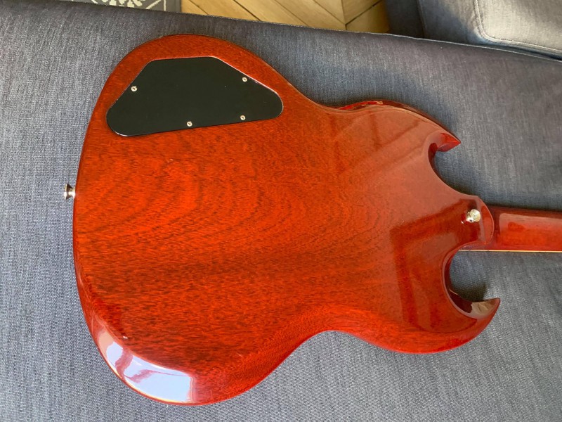 Je l’ai un peu essayé ce midi, elle est saine bien que mal réglée, et un peu sale et poussiéreuse, mais une fois passée sur l’établi (je changerais certainement les micros par des Seymour Alnico 2 que j’ai en rab, et le