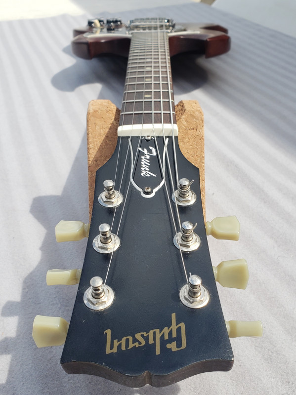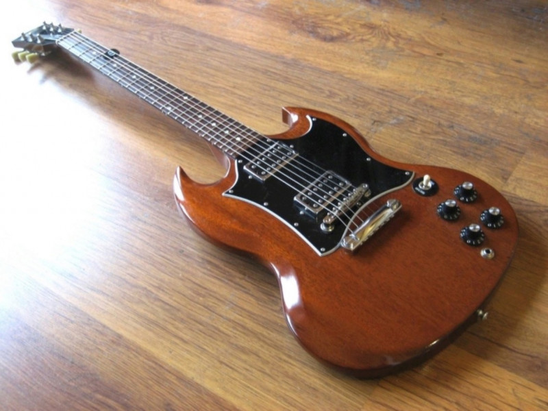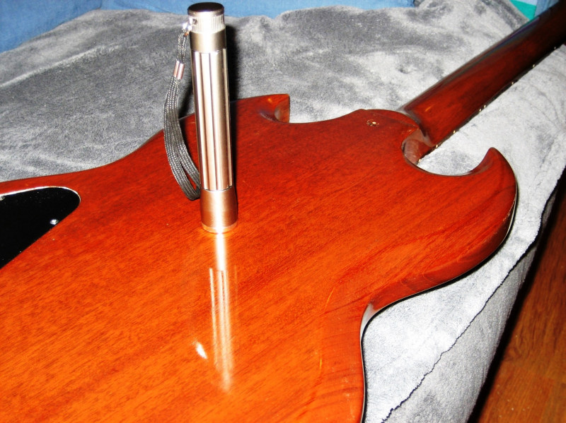 Ma SG Special Faded de 2004 chargée en S. Duncan '59 SH-1, le précédent proprio l' a cirée avec un cire pour meubles anciens, la couche de cire est fine et très dure et rend comme un vernis, il avait fait un super boulot accastillage démonté et ça ne bouge pas, guitare achetée en Angleterre.