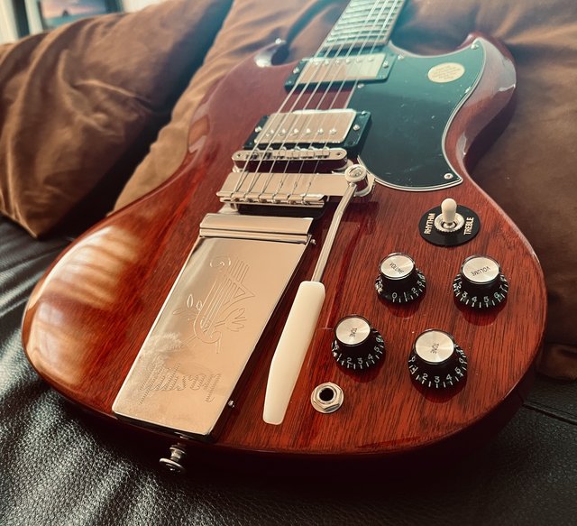 Sur les SG Special actuelles le chevalet est compensé donc "droit".