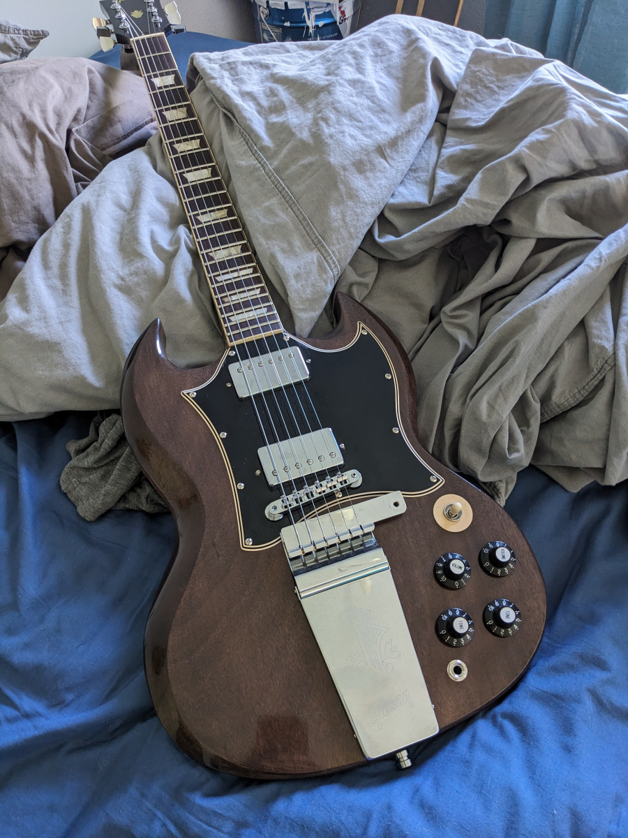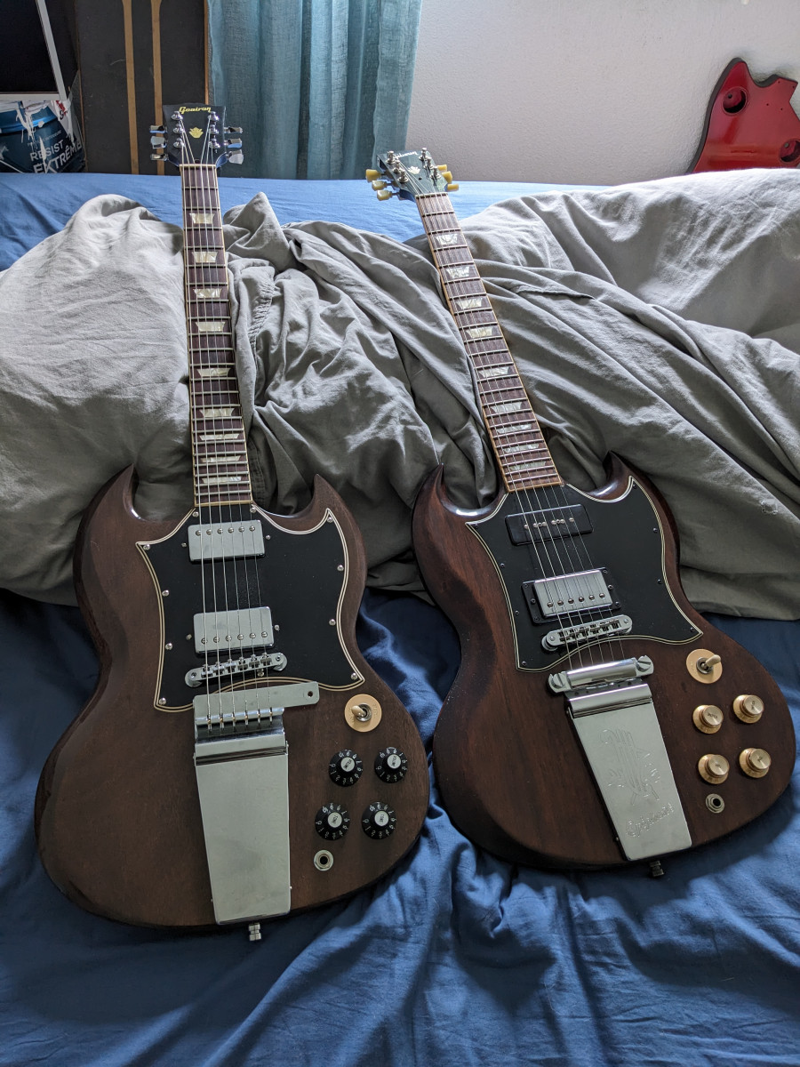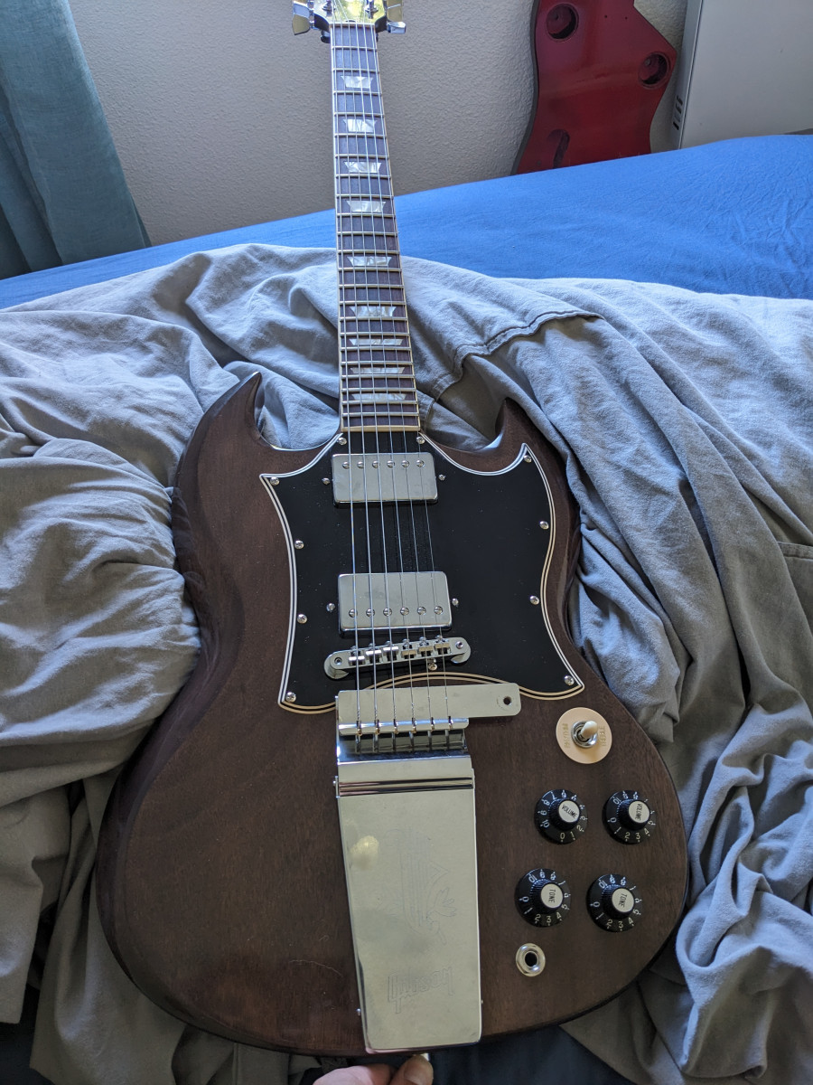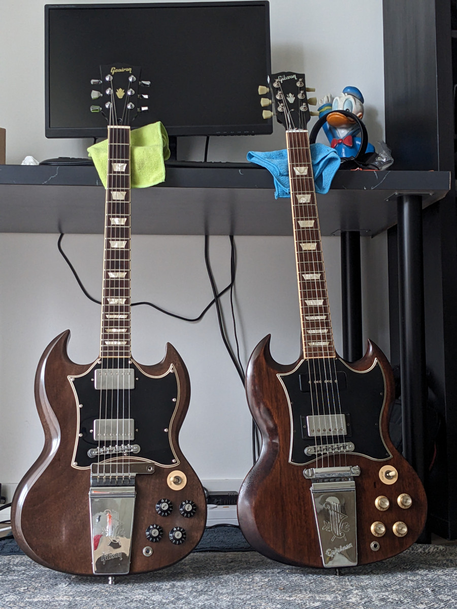 Pour comparer avec ma vraie Gibson standard, les deux font aux alentours de 3kg , pas tellement de différence niveau sensation entre , c'est un bon signe je m'améliore ????