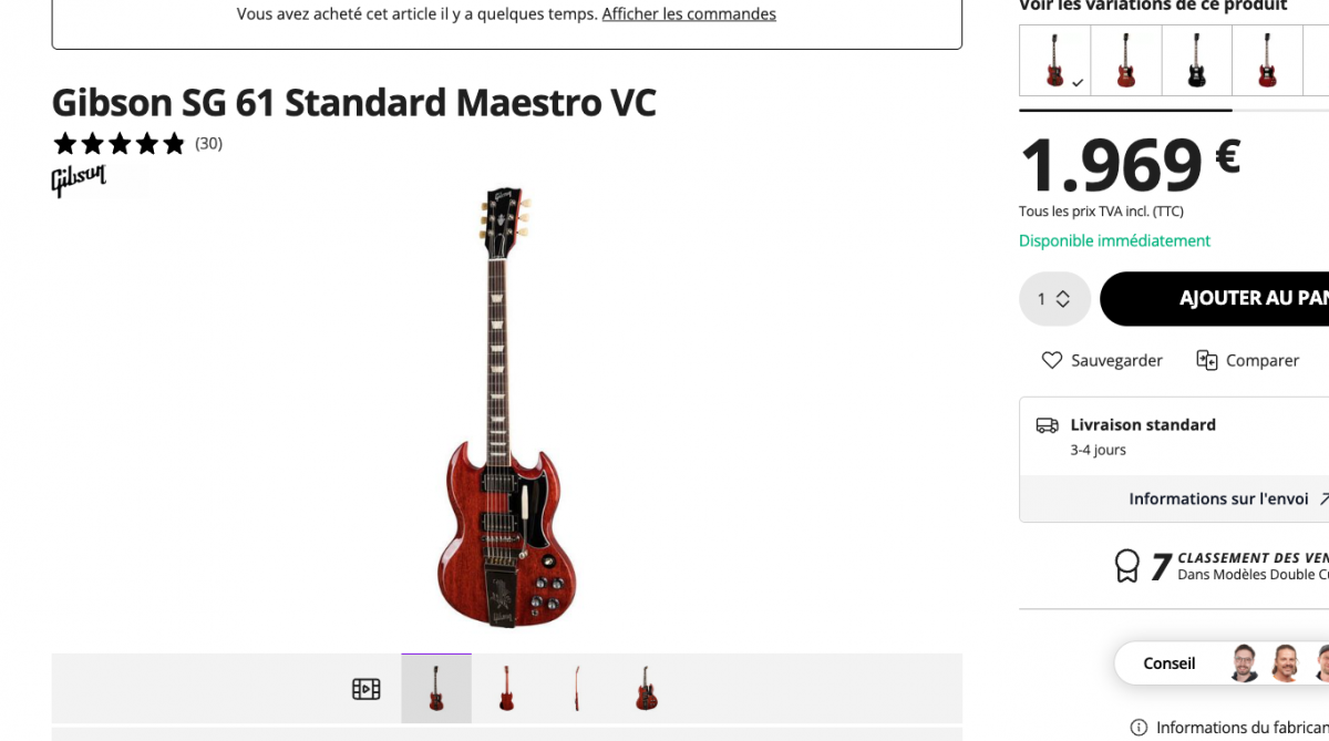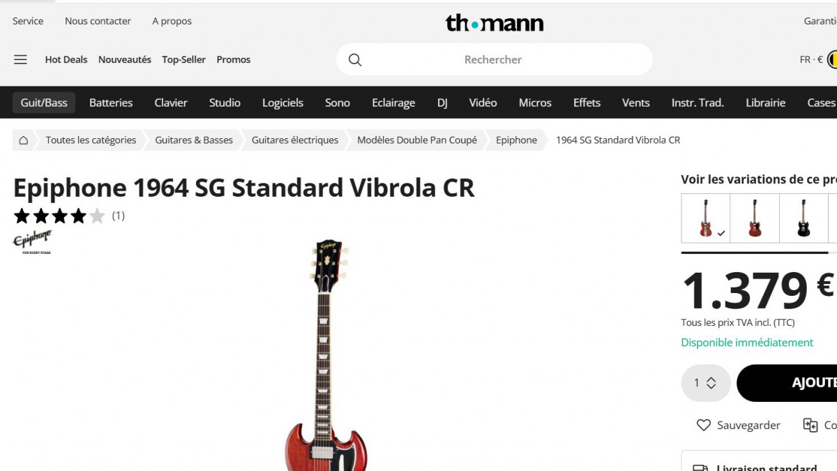 Et la Gibson avec vibrola c'est pratiquement 2000€. Donc dire que Epi et Gibson sont presque au même prix, c'est pas tout à fait juste comme comparaison. Il y a quand même 600€ d'écart.