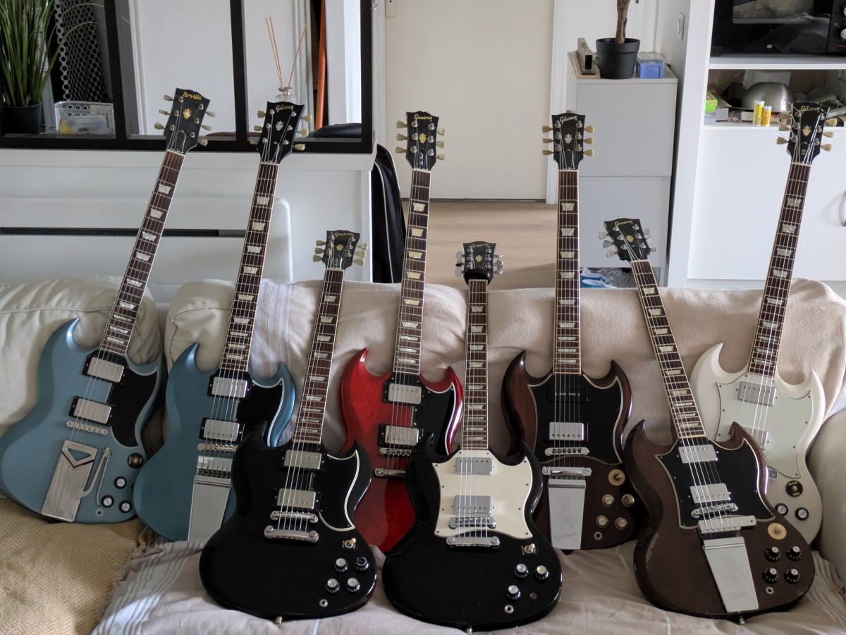 J'essayerais de publier une photo du groupe où l'on voit nos SGs (deux Gibson, une Standard de 93 blanc crème, celle de mon ami, et ma 61R de 2019 cherry et une Epiphone EB-00 noire pour le bassiste)