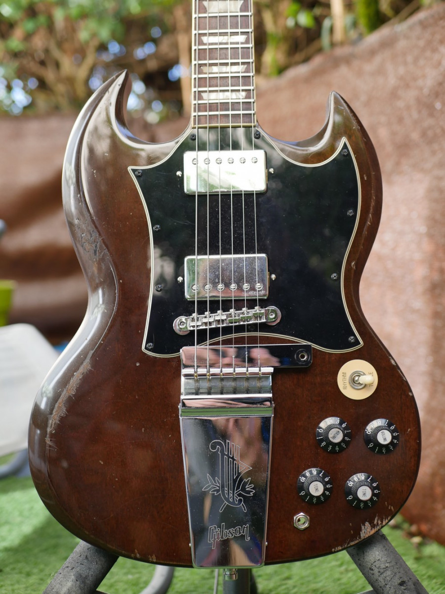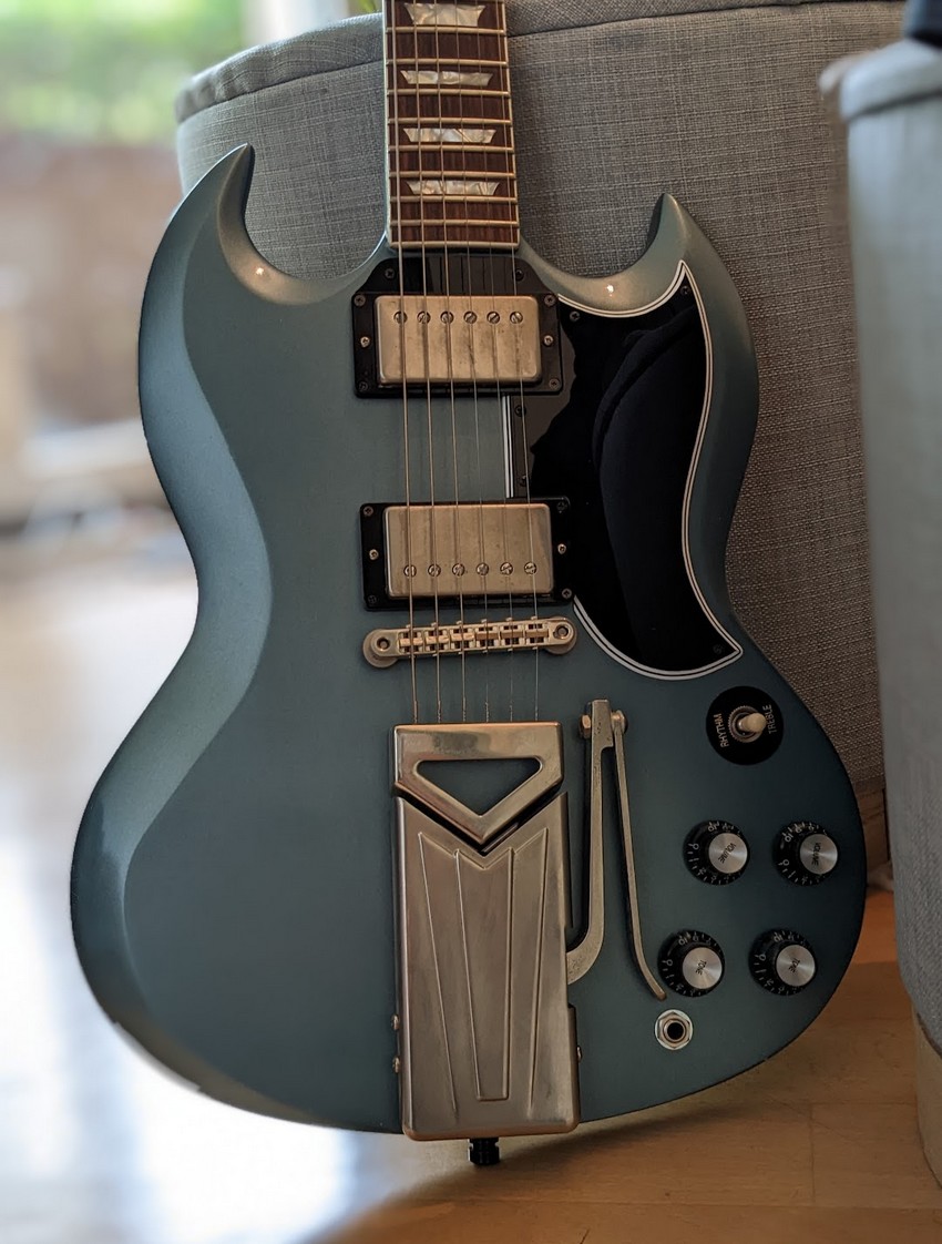 Dans mon groupe, on a tous une SG. Moi, une de 61 reissue de 2019 Slim taper neck cherry red, l'autre gratte, une SG standard blanc (plutôt jaune maintenant) de 1993, année de sa naissance (elle appartenait à son père) et le bassiste a une épiphone SG noire. On rigolait en disant que le batteur se devait de posséder une batterie SG mais qu'on était pas trop regardant sur la couleur x).