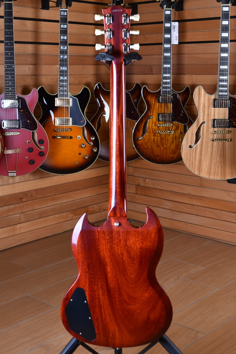 Dans mon groupe, on a tous une SG. Moi, une de 61 reissue de 2019 Slim taper neck cherry red, l'autre gratte, une SG standard blanc (plutôt jaune maintenant) de 1993, année de sa naissance (elle appartenait à son père) et le bassiste a une épiphone SG noire. On rigolait en disant que le batteur se devait de posséder une batterie SG mais qu'on était pas trop regardant sur la couleur x).