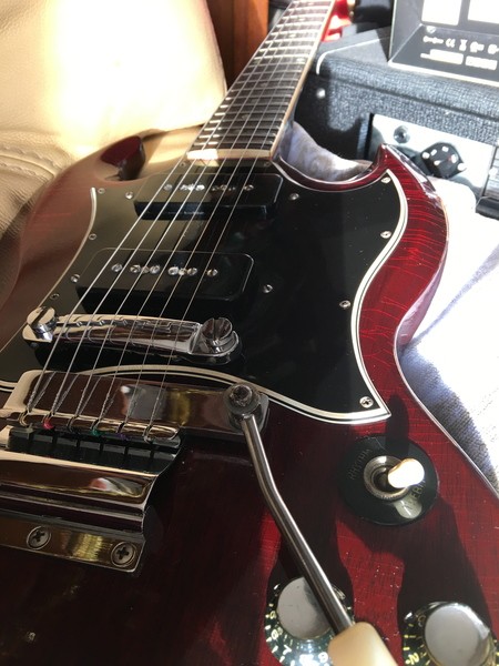 Voila c'est a peu prés tout ce que je peu dire pour l'instant sur cette copie de SG, j'ai plaisir a jouer dessus le manche est vraiment génial! mais les micros vraiment dégueux, je recherche une paire de C57 c'est ce qui me semble correspondre le mieux a l'esprit de la gitare et au son que je recherche!donc je vous ferais pare de mes impressions quand je les aurais changés.