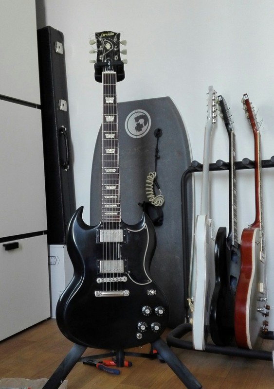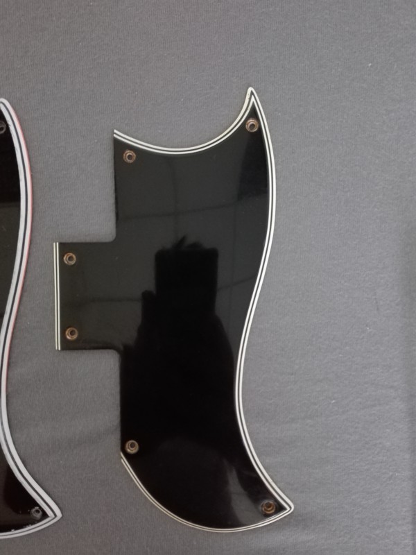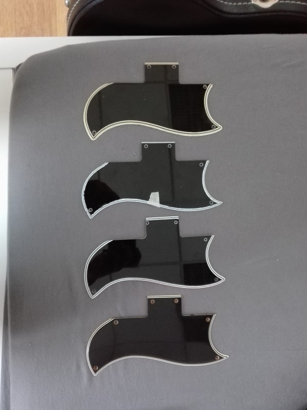 Enfin ce que j'estime le plus important, le pickuard . Je suis fan des SG vintages , qui n'ont absolument rien à voir avec celles d'aujourd'hui. Un détail qui ne trompe jamais est le pickguard.... Impossible à trouver en version Custom shop, j'ai décidé de faire une folie et de m'en prendre un de 1965 sur eBay : voilà le comparatif avec tous les autres modèles présent sur le marché. Celui qui se rapproche le plus est celui de crazy part :